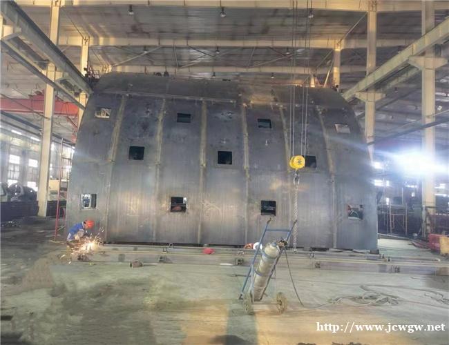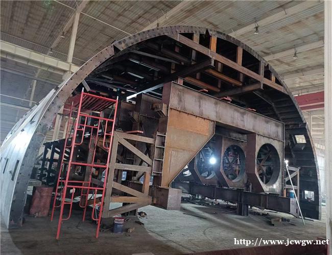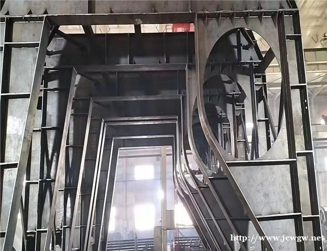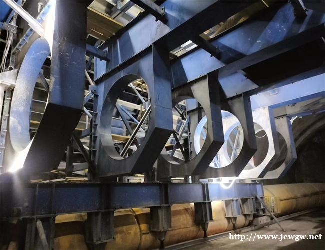 (6)双车道双线小车的面板钢板厚度不小于10毫米;;三车道隧道二衬台车的面板钢板厚度不小于12毫米;;四车道二衬台车必须请相关专家研究评审后计算定制。为了减少二衬模板之间的印痕,外弧形模板每块钢板的宽度应为2m,但不得小于1.5m,板与板之间的接缝应搭接或焊接,并按齿打磨。为保证双车道小车的刚度和强度,双车道小车每延米重量不小于6.8吨,三车道小车每延米重量不小于8.5吨。